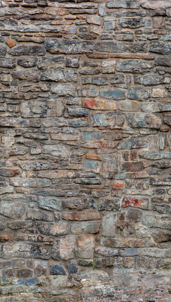 Vlies Fototapete Steinimitate, Steinmauern, Graublau-, Braun- und Ziegelsteintöne. Die Tapete hat ein Folgemuster, für eine größere Breite einfach ein weiteres Stück kaufen.
