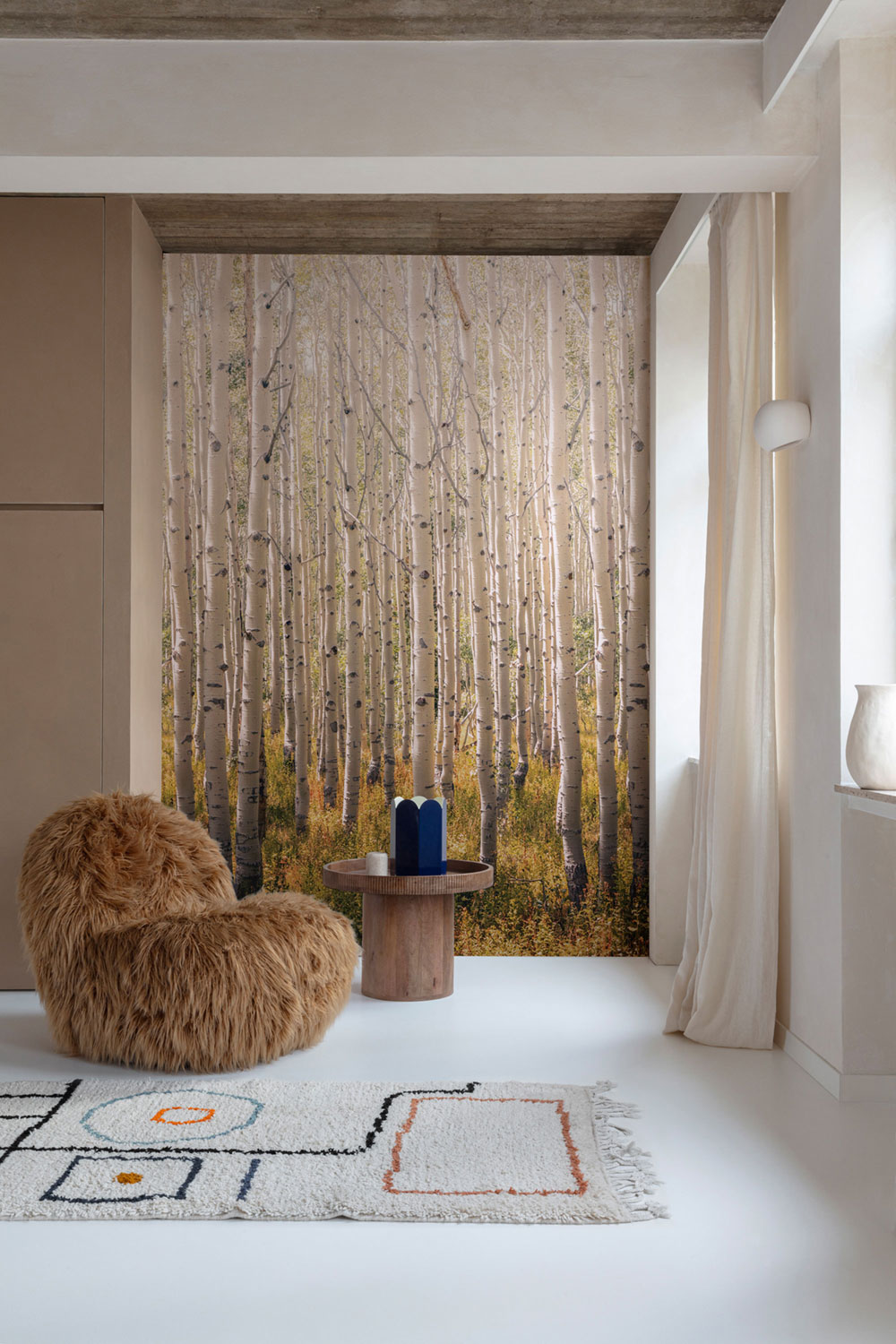 Vlies-Bildtapete – holen Sie sich die ruhige Atmosphäre eines Birkenhains in Ihr Zuhause.