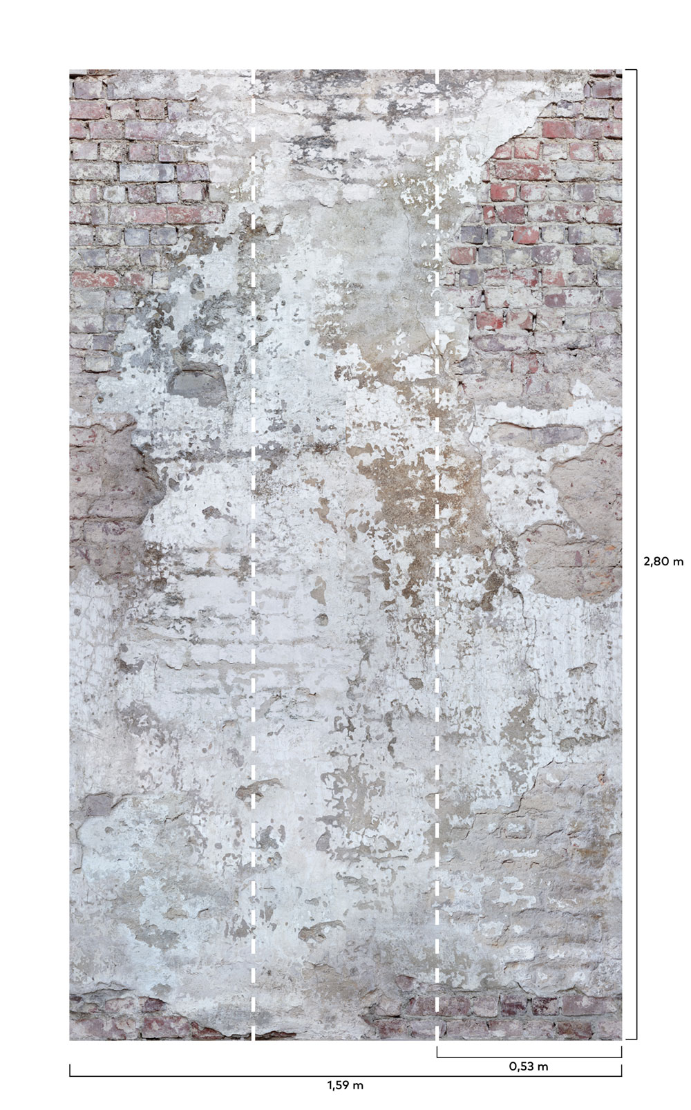 Vliesbildtapete mit Ziegelmotiv – das Design einer abgenutzten Ziegelwand in Grau-, Braun- und Ziegeltönen.