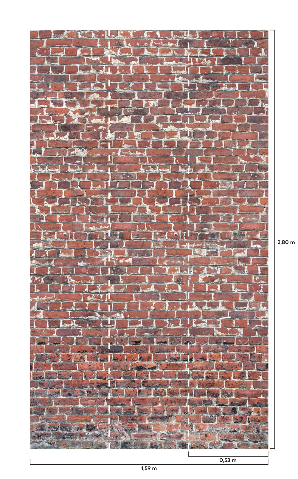 Vlies Fototapete Red brick - zeitloses, immer noch beliebtes Backsteinwanddesign. Die Tapete hat ein Folgemuster, für eine größere Breite einfach ein weiteres Stück kaufen.