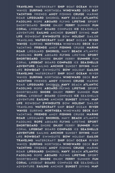 Dunkelblaue Fototapete mit Texten mit nautischem Thema.
