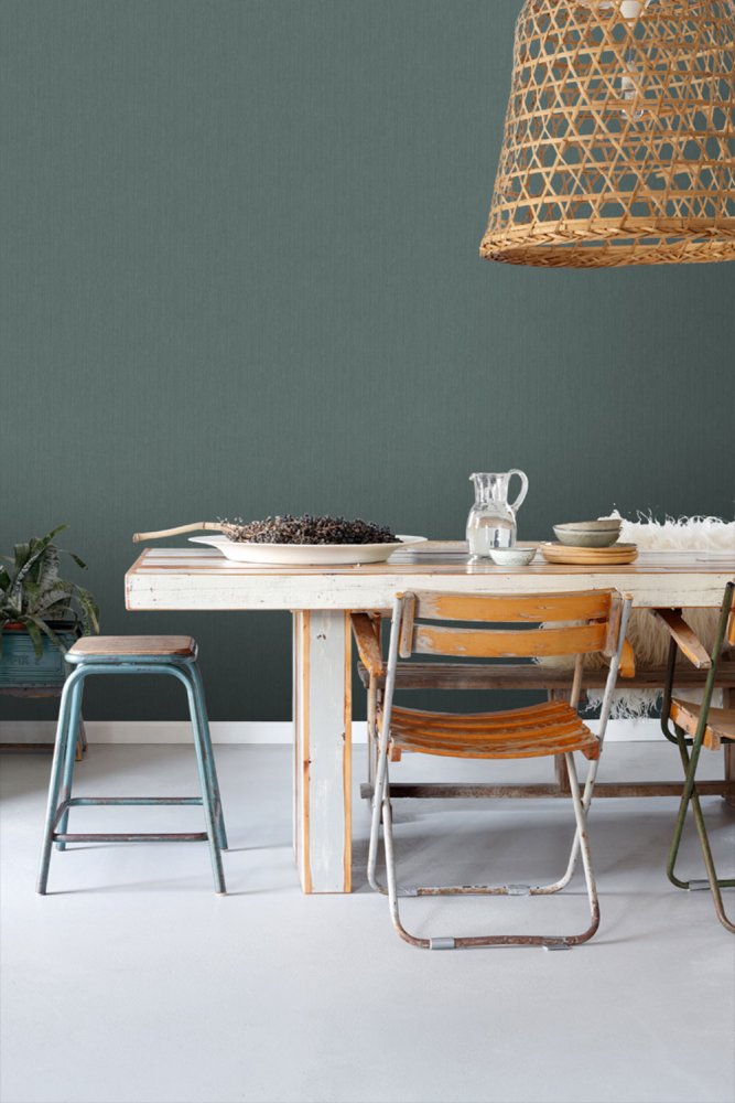 Strukturtapete, Imitation von dunkelgrünem Stoff.