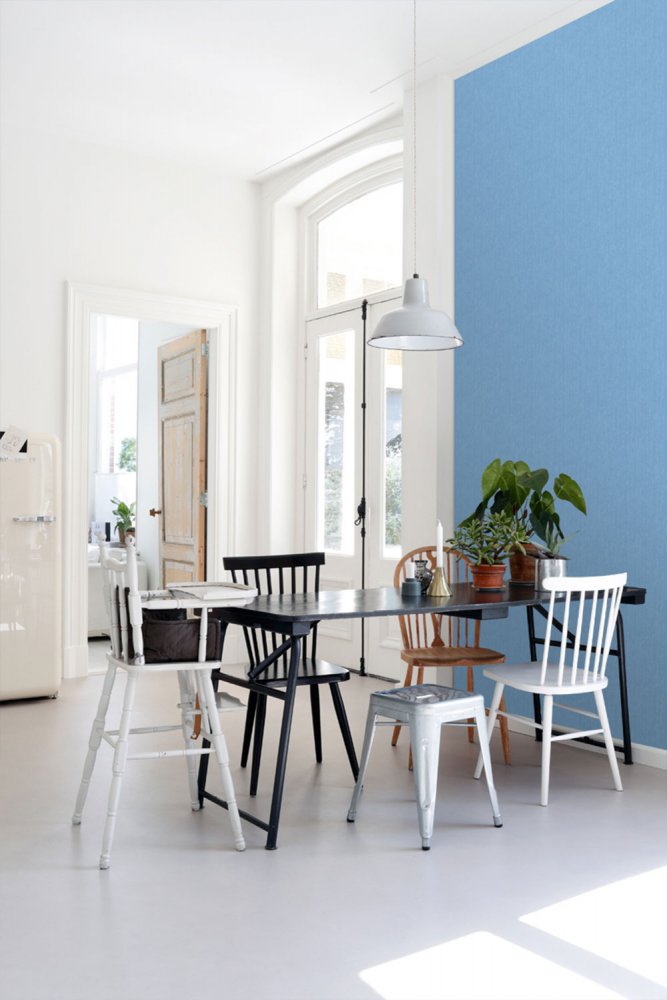 Strukturtapete, Imitation blauer Stoff.
