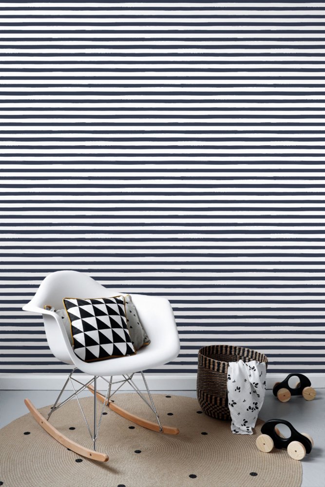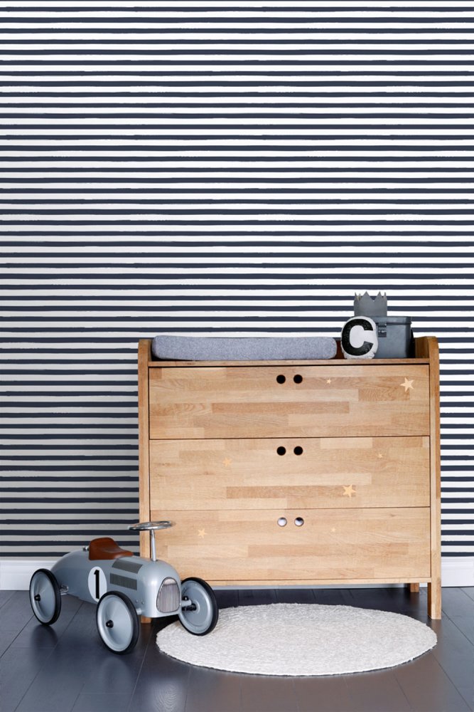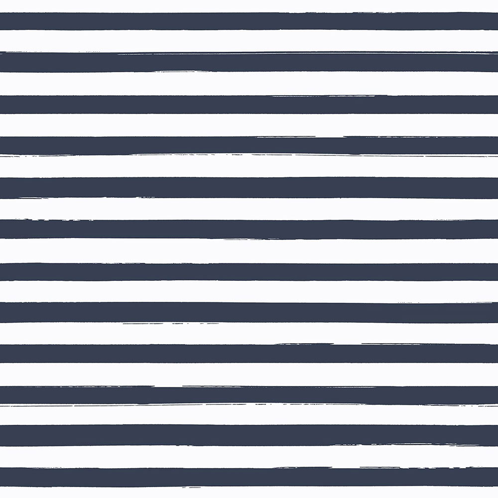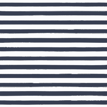 Vlies, gestreifte Tapete - dunkelblaue und weiße unregelmäßige Streifen.