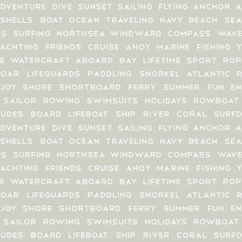 Graue Vliestapete mit weißem Text mit einem nautischen Thema.