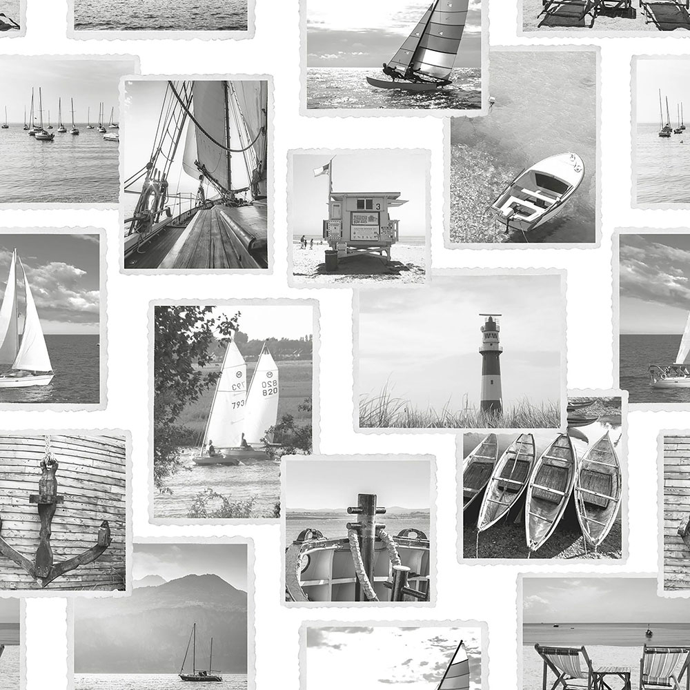 Schwarz-weiße Vliestapete Meer 138956, Regatta Crew, Esta Home