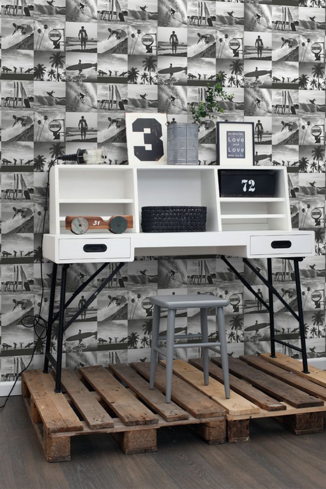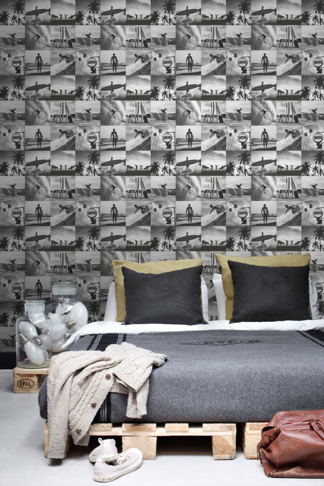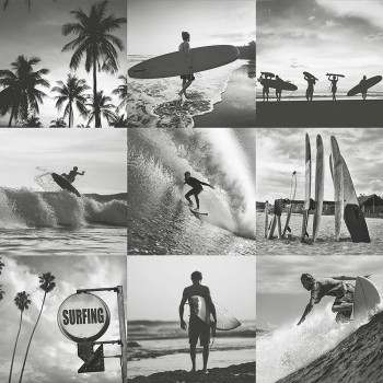 Vliestapete, Schwarz-Weiß-Fotos von Surfern.