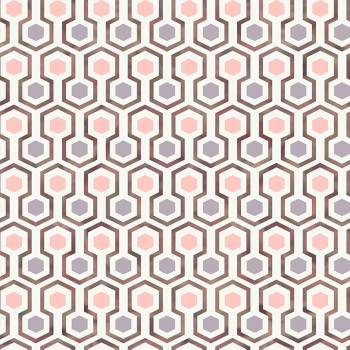 Geometrische Vliestapete, farbige Sechsecke, metallische Linien.