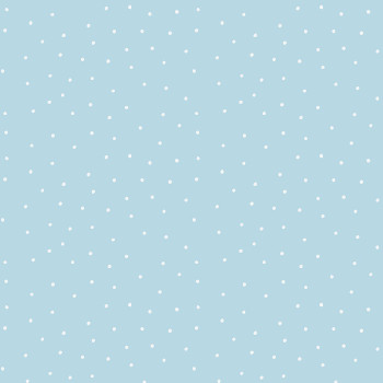 Hellblaue Papiertapete, kleine weiße unregelmäßige Punkte. Die Tapete hat eine feine Stoffstruktur.