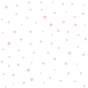 Weiße Papiertapete mit feiner Stoffstruktur, rosa und beigen Sternen.