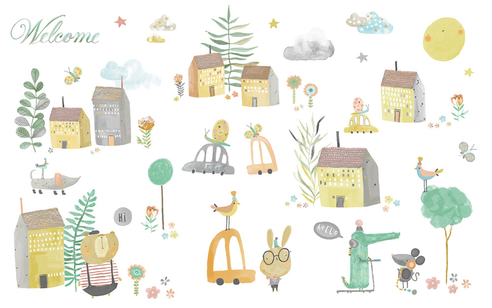 Oh lala ist eine Kollektion von Kindertapeten von ICH Wallcoverings, die nicht nur Tapeten mit Weltraum- und Tiermotiven enthält. Auch die Kindertapeten aus der Kollektion Oh lala zeigen Motive von Elefanten, die fröhlich spazieren gehen. Die Kollektion umfasst auch Tapeten mit Motiven von Waldtieren, die sich im Dorf tummeln. Nicht zuletzt wecken die Wallpapers den Sternenhimmel in Kindern, wenn sie in einer Rakete zu den Sternen aufbrechen.