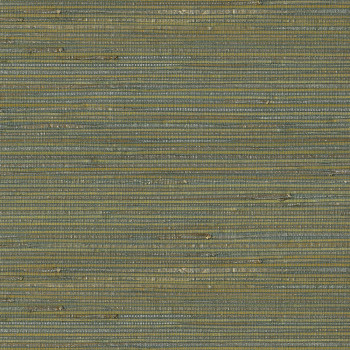 Grün-graue Tapete aus Naturmaterial auf Papierunterlage, silberne Metallic-Reflexe.
