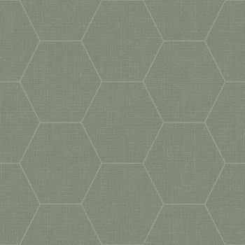 Tapete mit geometrischen mustern mit feiner Stoffstruktur, Sechseckkonturen melange grün und graugrün.