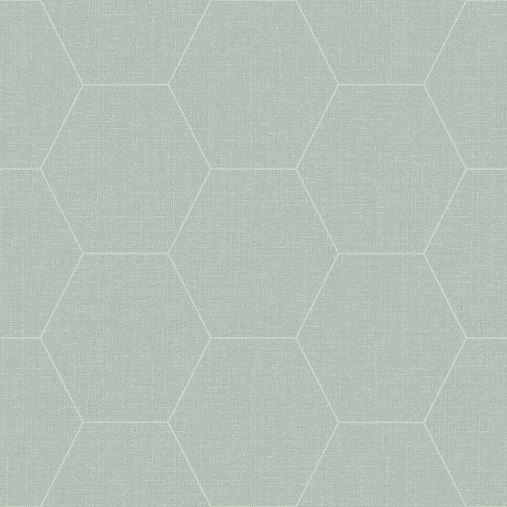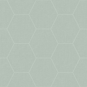 Tapete mit geometrischen mustern mit feiner Stoffstruktur, Sechseckkonturen melange grün und graugrün.