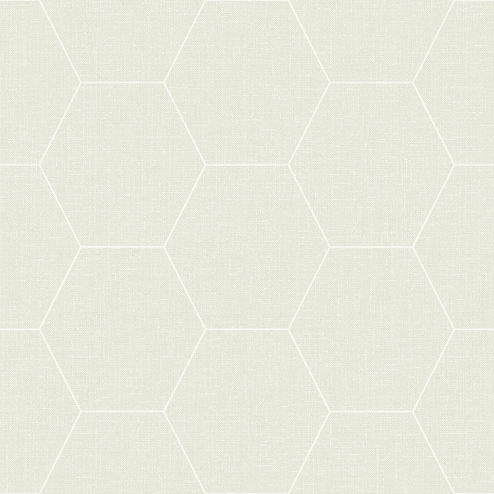 Tapete mit geometrischen mustern mit feiner Stoffstruktur, Sechseckkonturen in Creme- und Beigetönen.