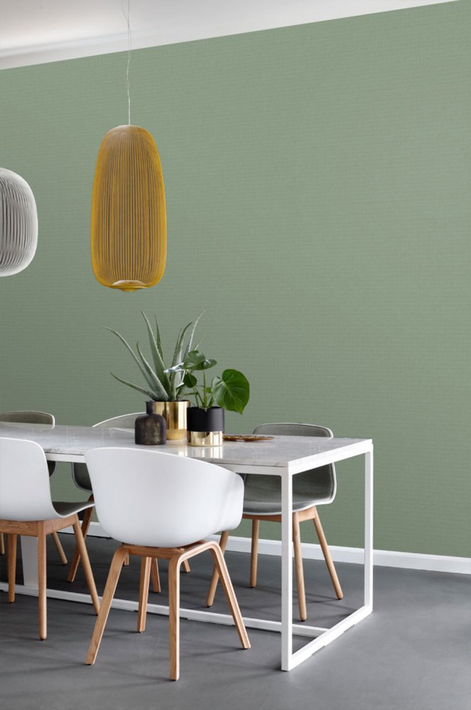 Tapete mit zarter Struktur, Stoffimitat in Grüntönen, Melange.