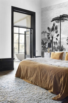Schwarz-weiß Fototapete - Dschungel, Palmen, Tapete Wandbilder 158952, 350x279cm, Paradise, Esta