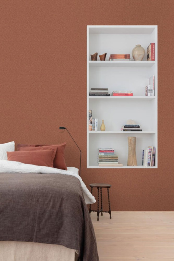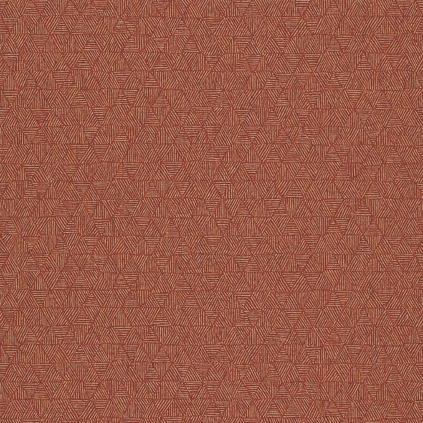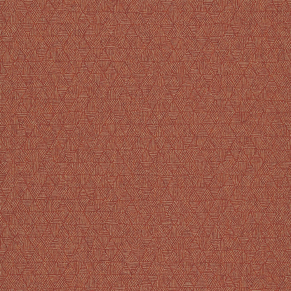Vliestapete. Dunkler Terrakotta-Hintergrund, goldene Linien, die Dreiecke bilden.