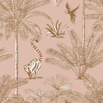 Rosa Tapete - Affen, Palmen, tropische Blätter, Vliestapete 158943, Paradise, Esta Home