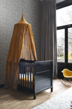 Schwarz-weiße Tapete, Leopardenfell-Imitat.