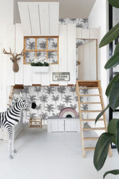 Schwarz-weiße Tapete mit Palmen, Vliestapete 139162, Paradise, Esta Home