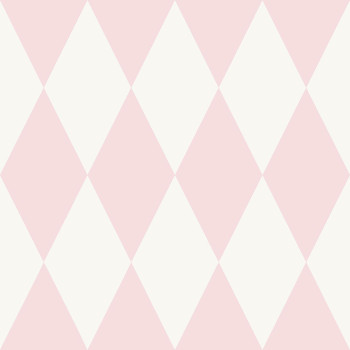 Tapete mit geometrischen mustern, weiße Perlmutt- und rosa Metallic-Rauten.