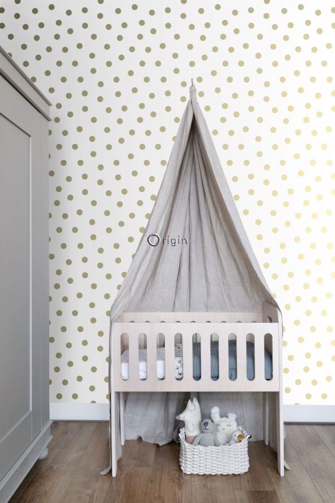 Weiße Tapete mit goldenen Tupfen, Vliestapete 347674, Precious, Origin