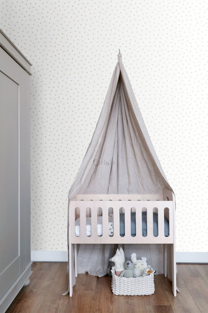 Weiße Tapete mit goldenen Tupfen, Vliestapete 347673, Precious, Origin