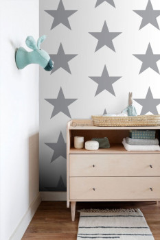 Weiße Tapete mit grauen Sternen, Vliestapete 347672, Precious, Origin