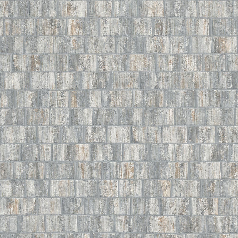 Feinstrukturierte Vliestapete - Fliesenimitat mit Metallic-Effekten.