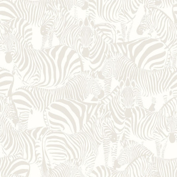 Tapete, Zebra-Motiv in Weiß Matt und Metallic-Creme.
