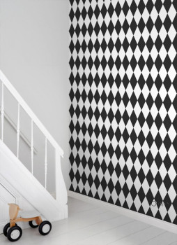 Tapete mit geometrischen mustern - weiße und schwarze Rauten, Vliestapete 347670, Precious, Origin