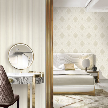 Cremige luxuriöse, gestreifte Tapete, die sich für Wohn-, Schlaf- und Arbeitszimmer eignet.