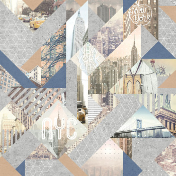Rollenbreite 1,06 m. Wasserfeste Tapete - Collage mit Motiven aus New York.