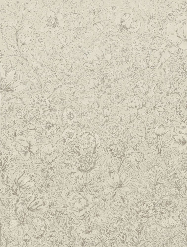 Fototapete mit Umrissen von Blumen auf beigem Hintergrund.