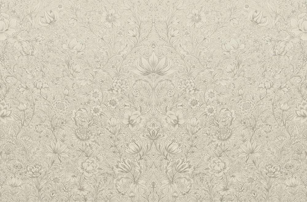 Fototapete mit Umrissen von Blumen auf beigem Hintergrund.
