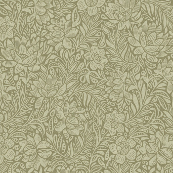 Blumentapete mit Naturmotiven in Grün und Hellgrün.