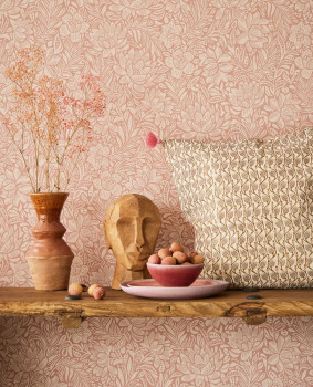 Blumentapete mit Naturmotiven in Braun und Beige.
