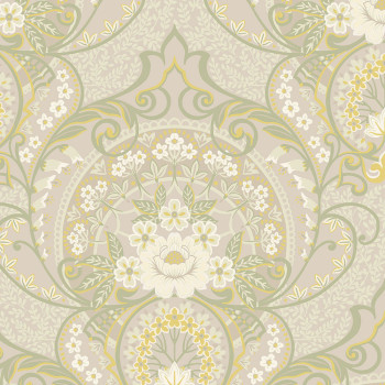 Markantes Blumenmuster in sanften Beige-, Grün- und Ockertönen.