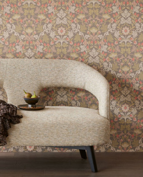 Ornamentale Blumentapete mit natürlichen Motiven in Beige und Braun.