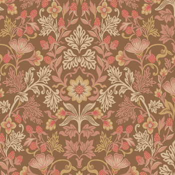 Ornamentale Blumentapete mit natürlichen Motiven in Beige und Braun.