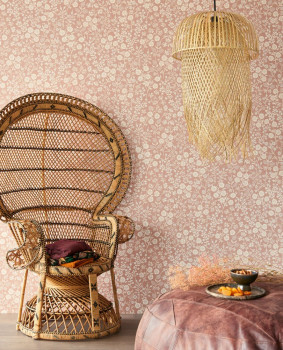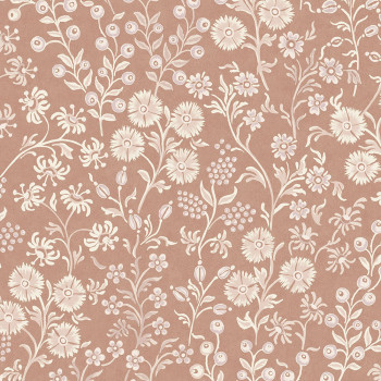 Blumentapete mit Naturmotiven in Beige und Braun.