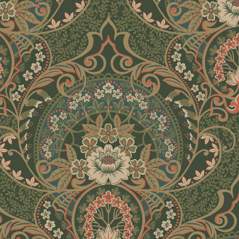 Markantes Blumenmuster in Pastelltönen von Braun, Grün, Beige und Ziegelstein.
