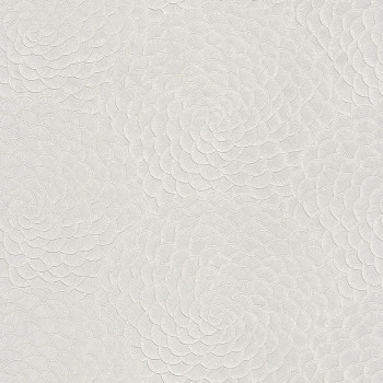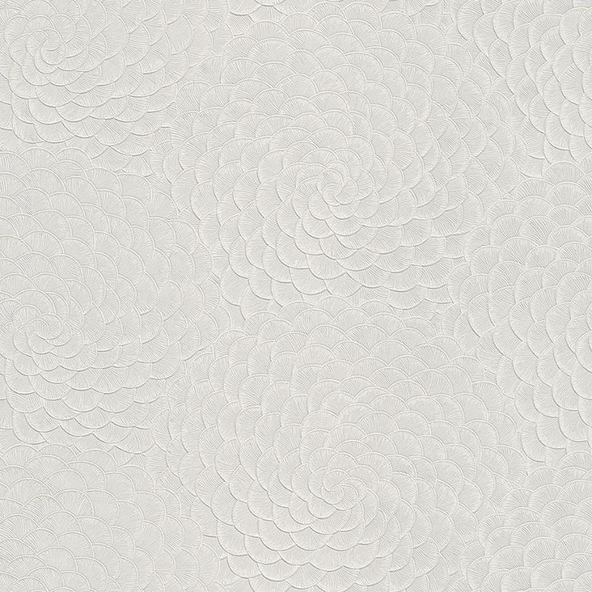 Vliestapete mit Blütenblättern. Weiße Feinplastischtapete mit zartem Perlglanz.