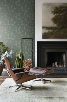 Grüne Tapete mit geometrischen mustern, Vliestapete 347755, Natural Fabrics, Origin