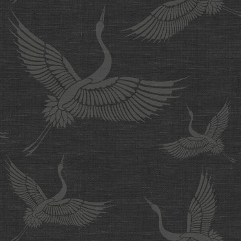 Graue und schwarze Tapete - Vögel, Kraniche - Stoff Textur, Vliestapete 347760, Natural Fabrics, Origin