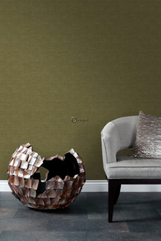 Tapete, Stoffimitat, Grüntöne, Khaki.
