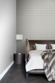 Tapete Stoffimitat grau-beige kariert, Vliestapete 347620, Natural Fabrics, Origin