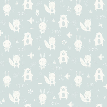 Mentholgrüne Tapete für die Kleinsten Waldtiere, Vliestapete L91304, My Kingdom, Ugépa