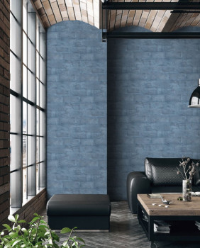 Tapete - imitierte blaue Ziegel, Ziegelwände M53001, Loft, Ugépa